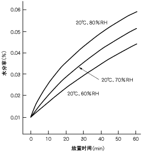 粒料的預(yù)干燥非常重要。預(yù)干燥不充分,成型品會變脆(請參照圖4-1~4-4)。 關(guān)于干燥機,推薦您使用除濕型。 如果干燥后在常溫下放置,粒料就會在短時間內(nèi)因吸收水分而達到平衡水分率。務(wù)請保持溫度,以免吸收水分。 |
